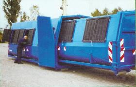 Close roll containers with hydraulic lifting roof or with sliding roof.